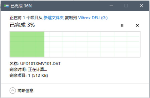 6.レプリケーションが完了すると、「Viltrox DFU」ディスクが自動的に取り出され、約5秒間の更新が開始されます。その後、「Viltrox DFU」ディスクが再び表示されますので、手順2を繰り返して更新されたバージョンを確認してください。