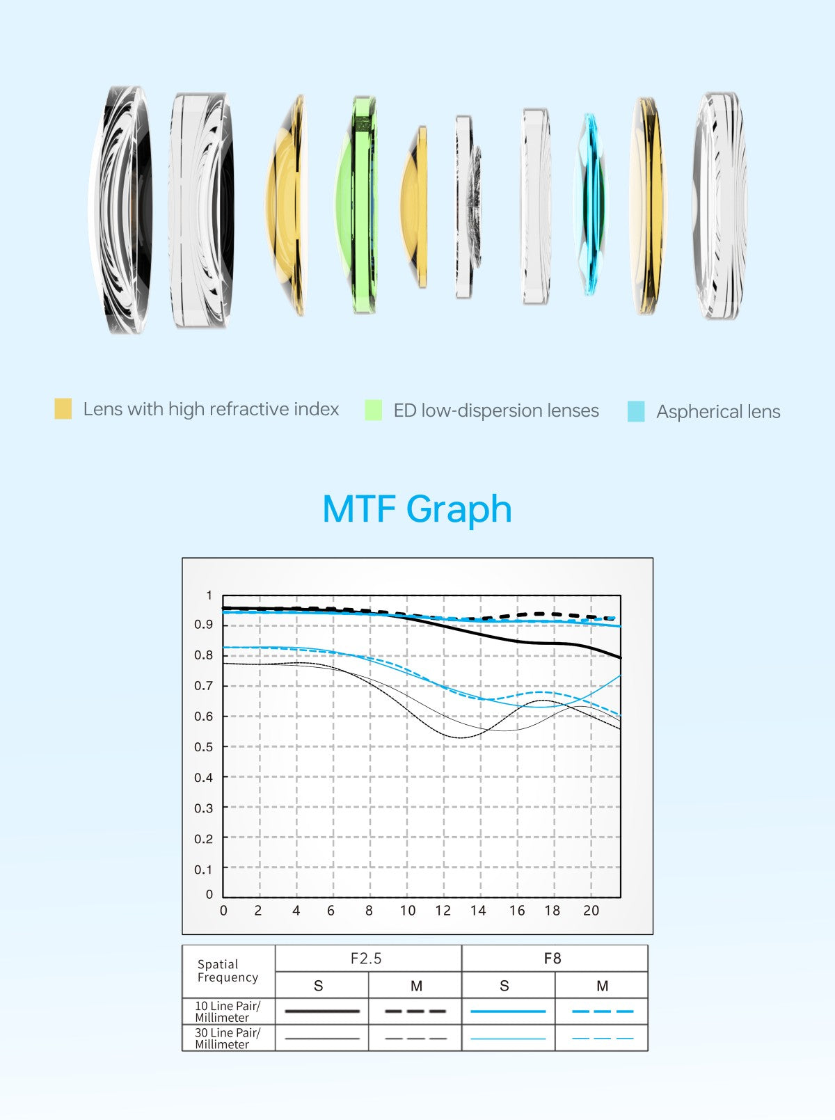 コンパクトで軽量、EXIFデータ記録、低歪み、効果的なフォーカスブリージング抑制を提供します。