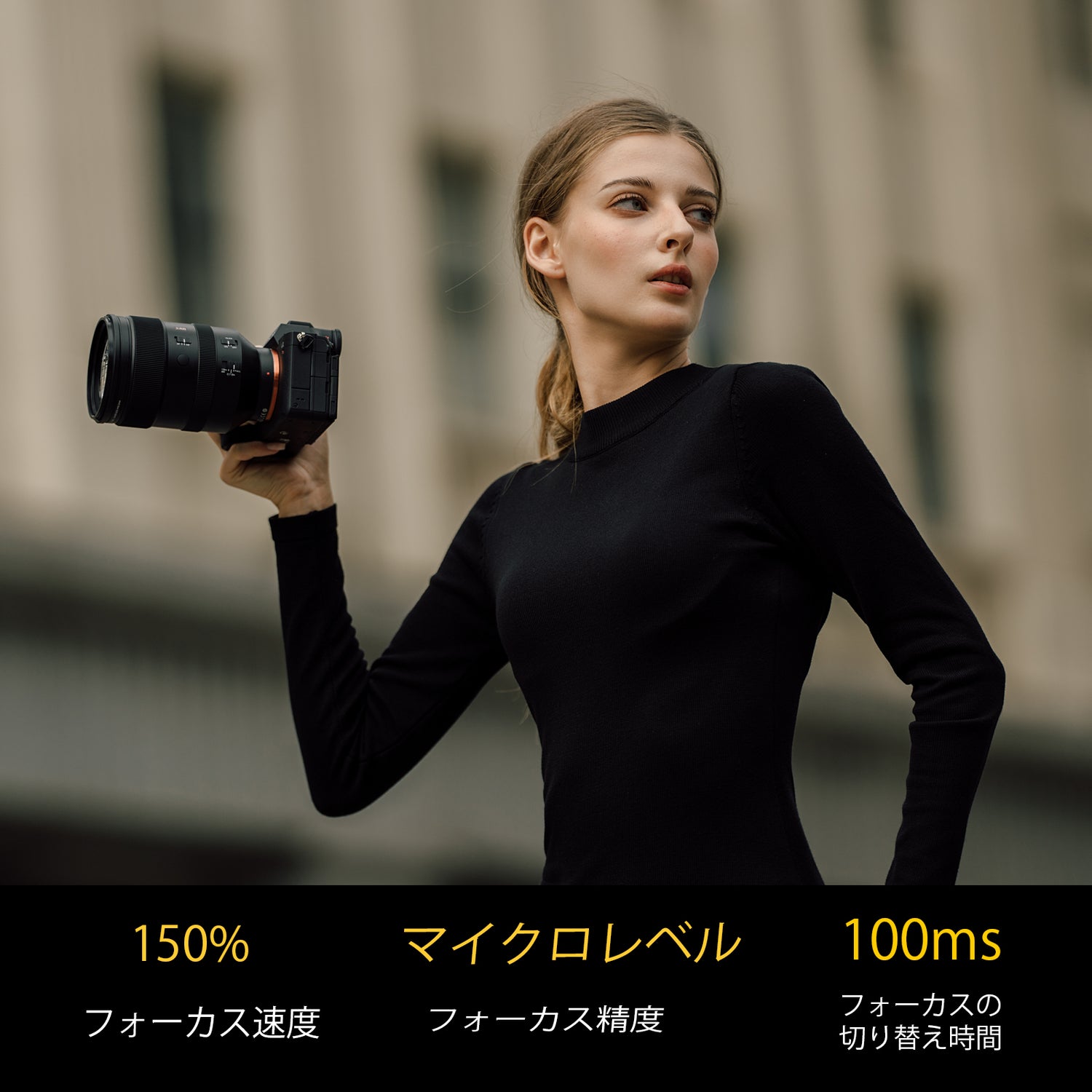 Viltroxが独自開発したHyperVCMモーター特許技術を革新的に採用し、従来のSTMモーターとの比較すると、フォーカス速度は150%向上し、マイクロレベルのフォーカス精度を実現。最短距離から無限遠までのフォーカスポイントの切り替えにかかる時間は100msです。
