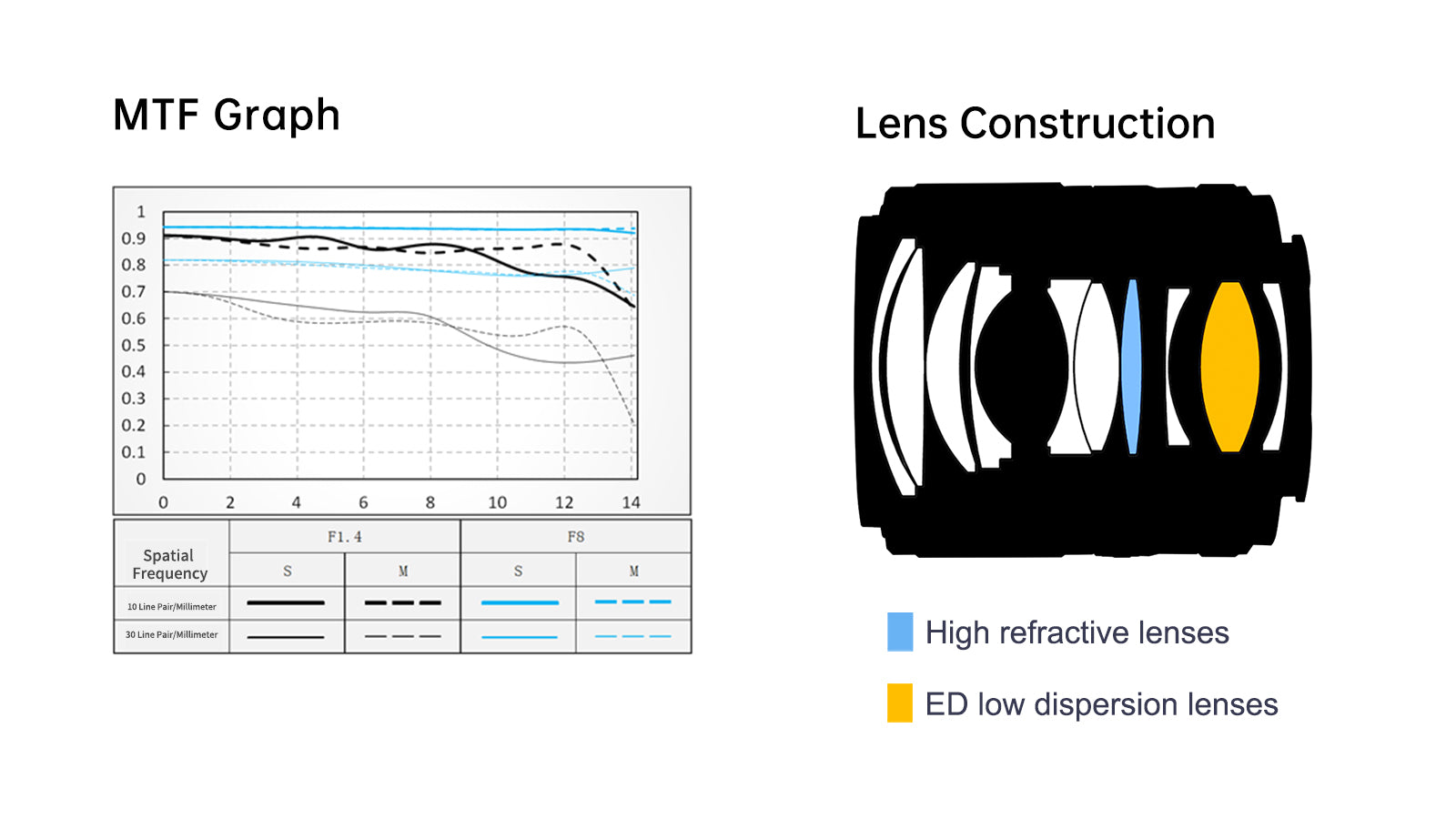 F1.4の大口径で、高いシャープネスと優れた解像度